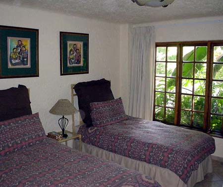 This apartment unit is equipped with twin beds in bedroom, en-suite bathroom and small dining area.