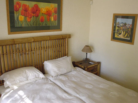 This apartment unit is equipped with twin beds in bedroom, en-suite bathroom and small dining area.